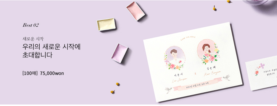 종이 청첩장 제작도 후보가 많아서 원하는대로 고를 수 있었고 샘플을 먼저 받아 볼 수 있는것도 좋았어요!